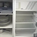 Newstyleアパ-トの部屋は電子レンジ,電気ポットとキッチン用品があります. Schulzentrum Isarstrasseというバス停まで徒歩5分です.